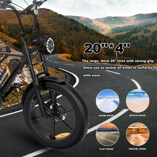 750W Electric Bike for Adults,20X4.0 Fat Tire Off-Road E Bike,48V/15Ah Battery Snow Beach Mountain Bike for Outdoor Cycling E Bike UL2849